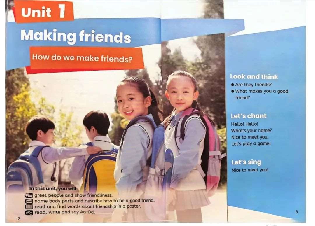 每个单元的开篇便直击核心,明确标注了单元主题,如“Making Friends”(交朋友),并配以引人深思的主题问题“How do we make friends?”(我们如何交到朋友?)。这一问题以开放式的形式呈现,旨在激发孩子们的探索欲与思考力,为整个单元的学习旅程奠定了基调。