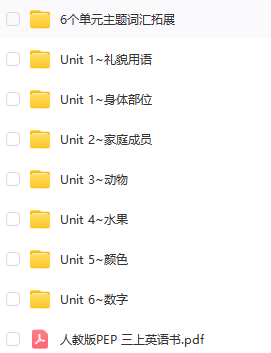除了儿歌,词汇拓展文件夹下的PDF拓展资源也有不少和新教材很配套的地方哦,可以打印和孩子拓展练习。