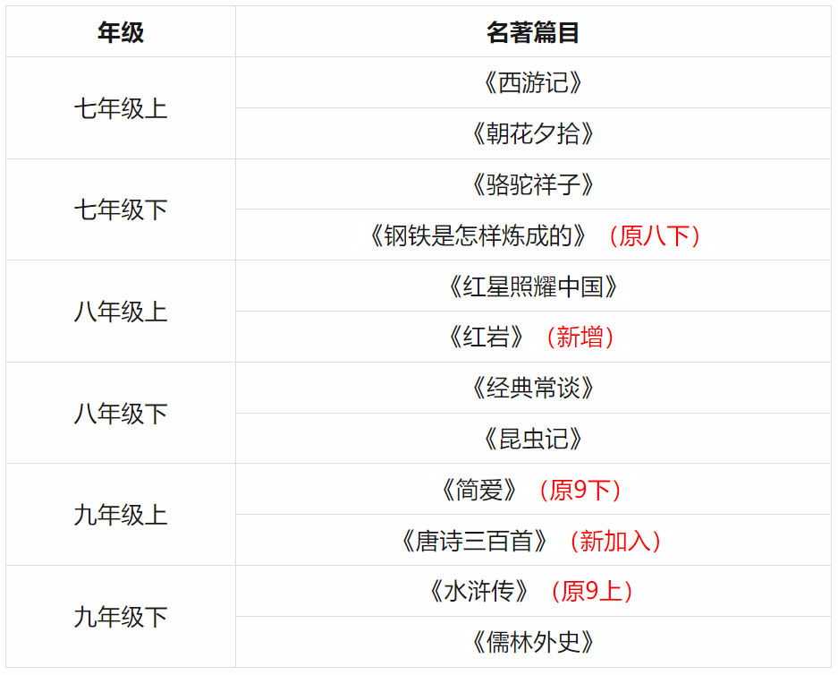 2024秋开始,初中三年必读名著阅读书目最新安排:
