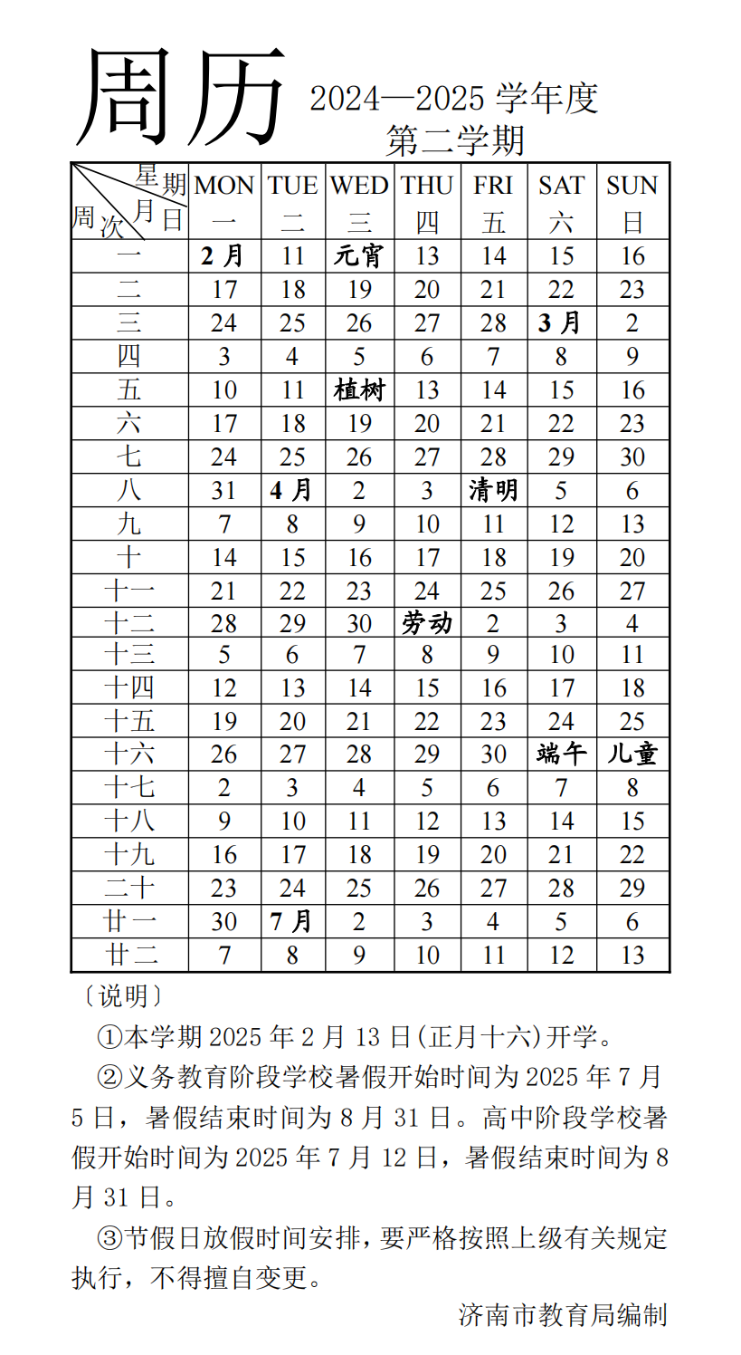 最新发布!2024-2025学年度周历揭晓,济南小学生寒假定于2025年1月18日,暑假则从7月5日开始!为助力家长把握升学脉搏,特奉上济南2025年小升初详尽时间轴,请家长们积极转发并珍藏!