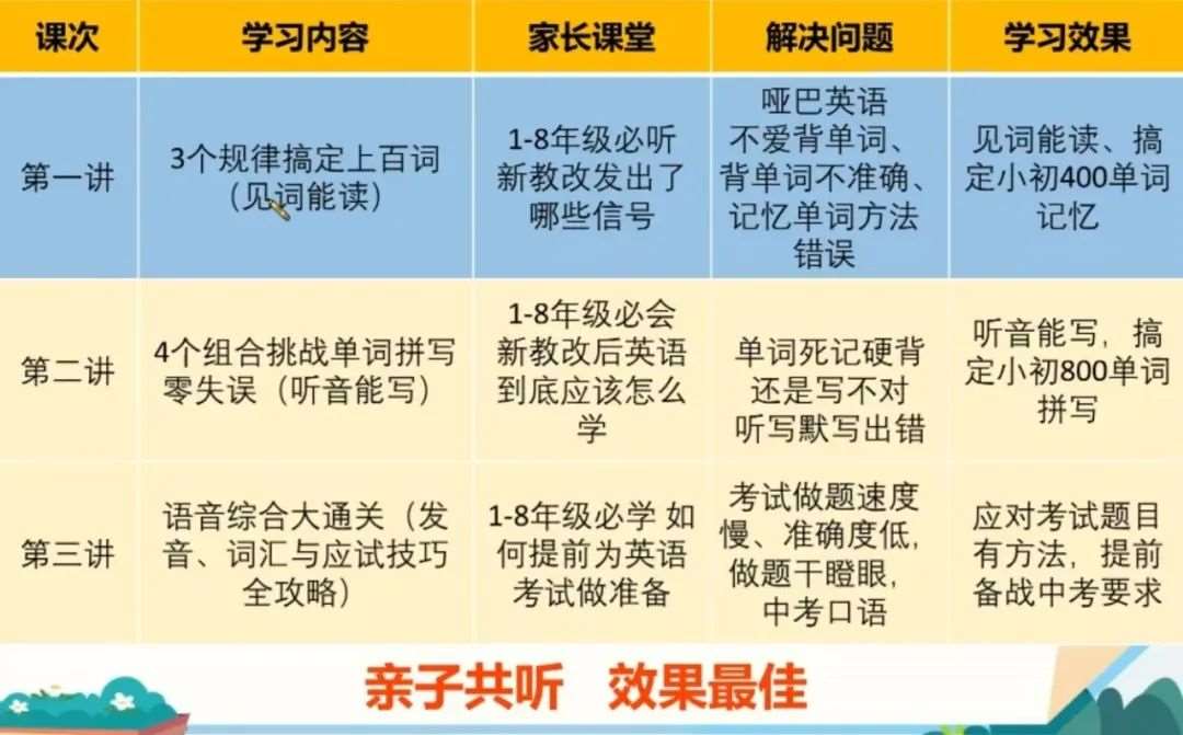 为了让更多小学生掌握英语学习规律,今天免费分享一份小学英语奇妙拼读课,课程能让孩子学到:三步成音拼读法+扩充词汇量+掌握发音规律+提升口语表达能力。