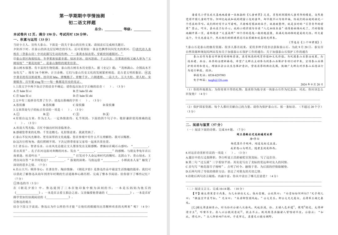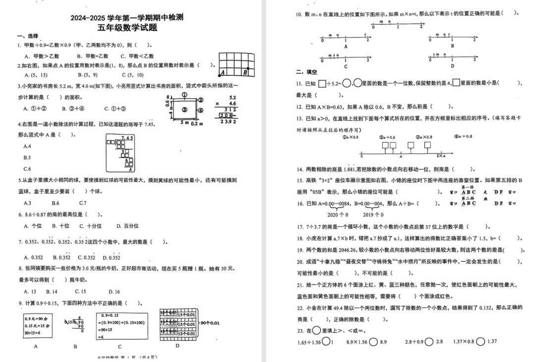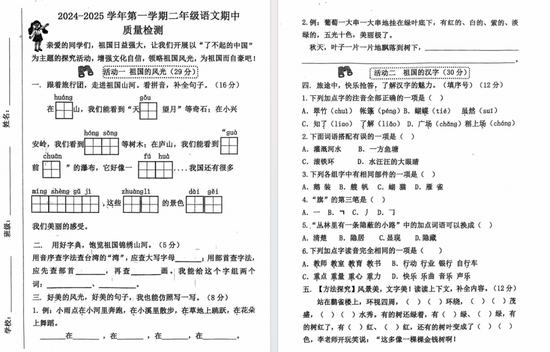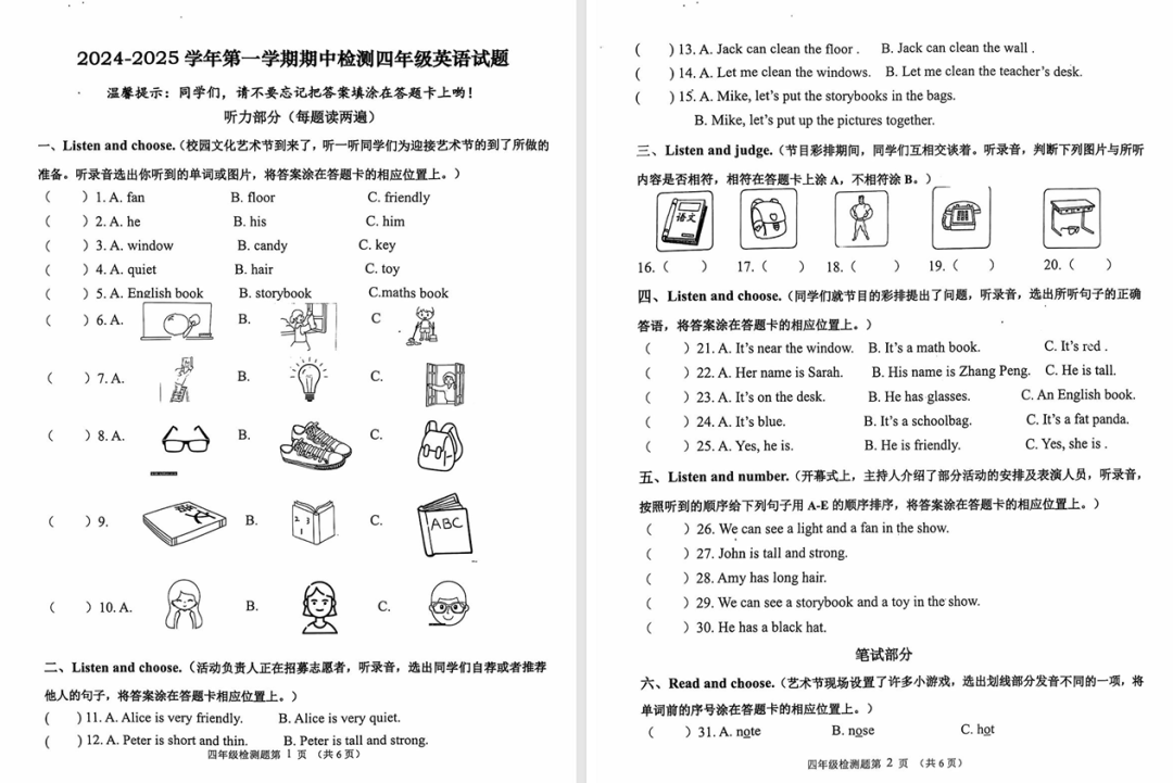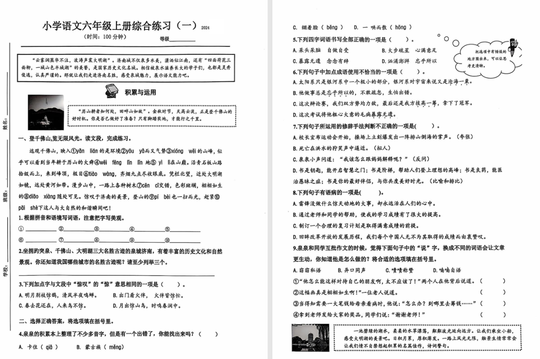 24.11济南 聊城 泰安 潍坊 枣庄 小学最新期中考试试卷出炉!免费领!