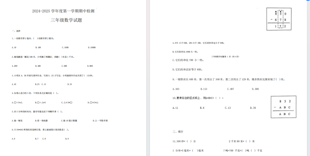 期中各科试卷及历年真题