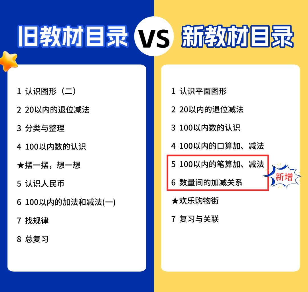 并且把原二年级上册的“100以内的笔算加、减法”移到一年级下册,新增“数量间的加减关系”,数量运算的篇幅大大增加。