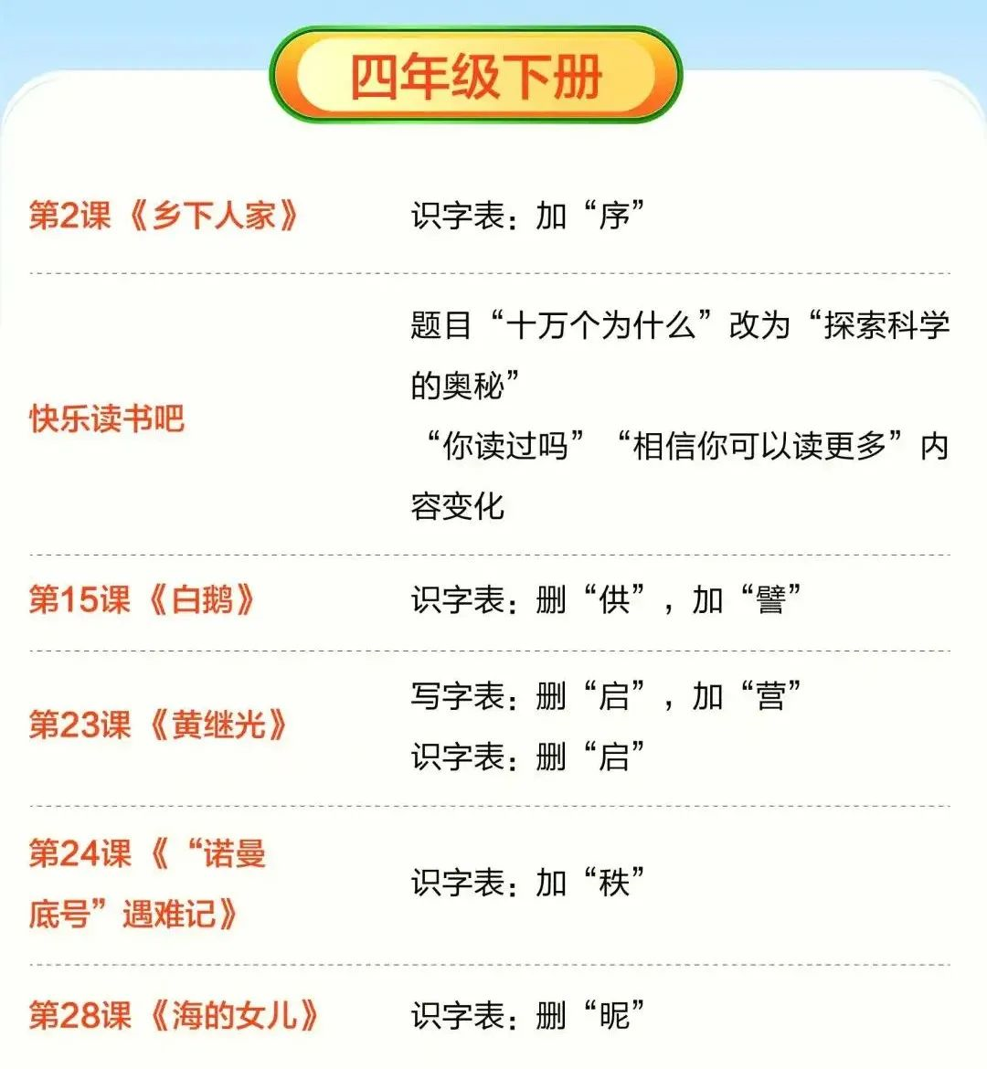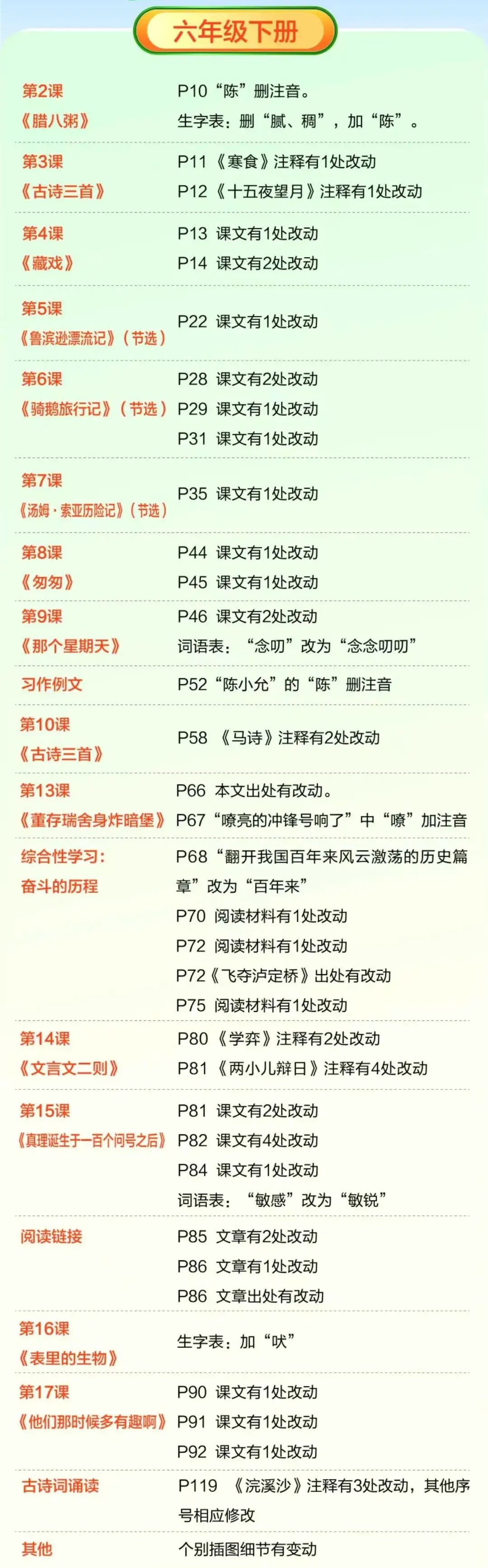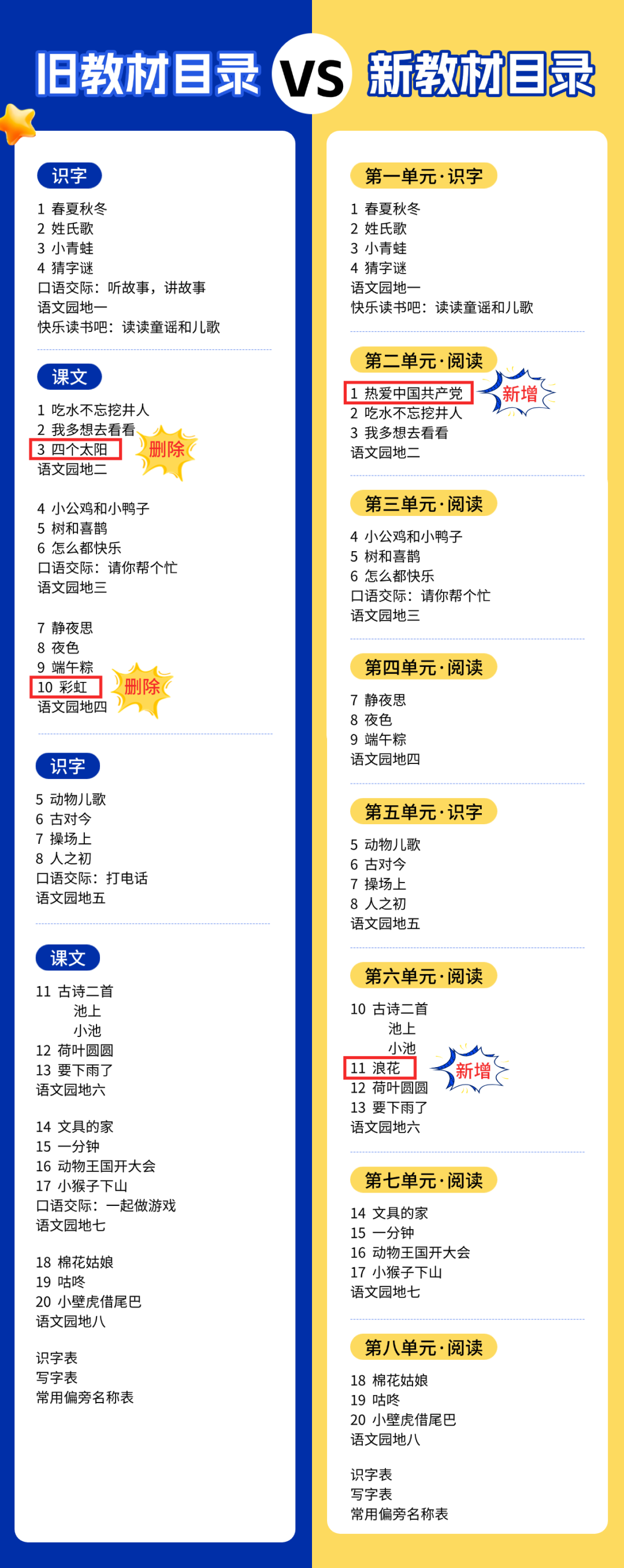 免费领1-6年级下册电子课本!新版小学2025春教材《内容变动》对比
