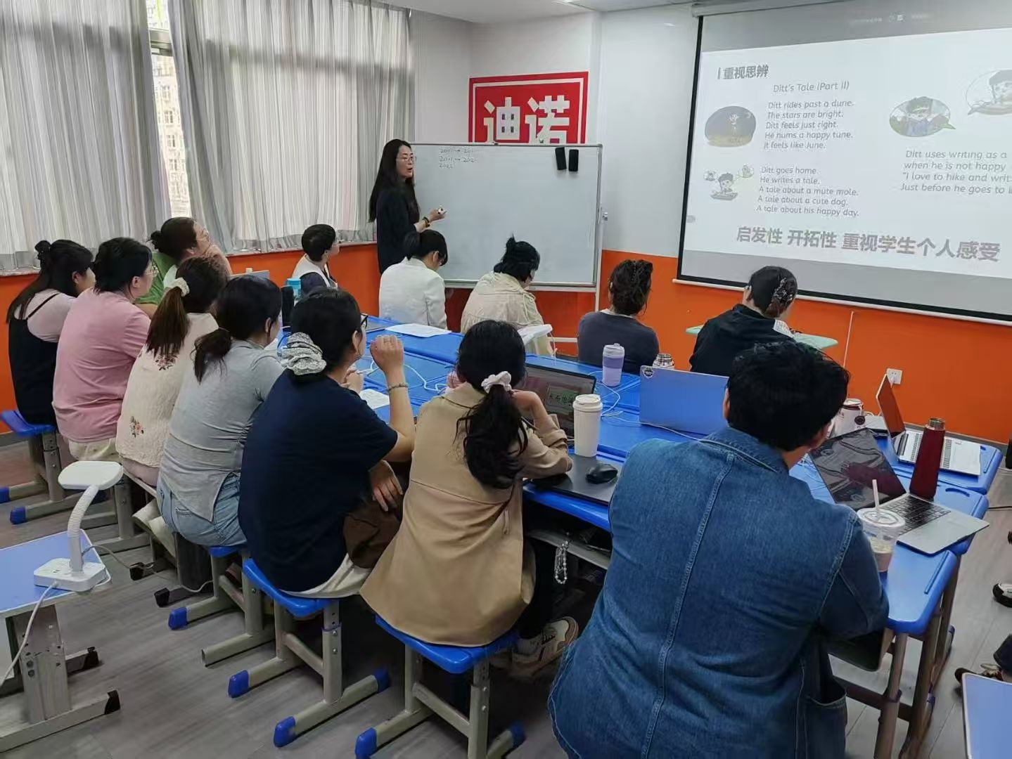 迪诺注重教师选拔与培养,教师选拔比例达9.6:1。建立系统的教师培训体系,包括固定培训与动态培训,涵盖教材解析、课堂设计、儿童心理学、家庭教育等内容,保障教学团队的专业性与成长性。
